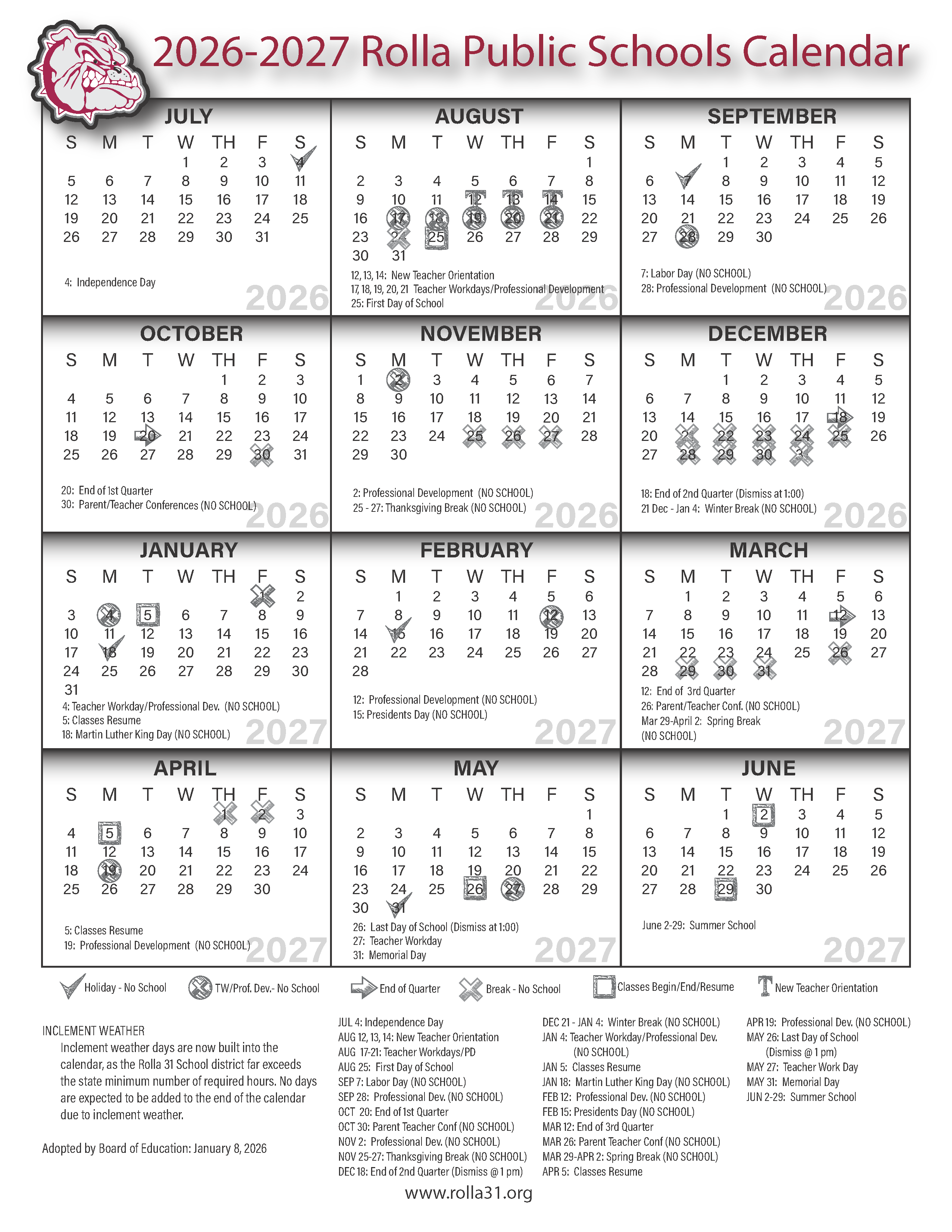 2026-27 & 2027-28 Academic Calendars ApprovedThe Rolla Board of Education approved the 2026-27 and 2027-28 Academic Calendars at the January 8th meeting. These calendars were submitted with the...